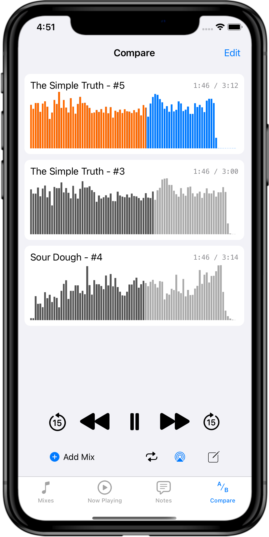 Upload your mixes from your DAW or Dropbox and they'll be instantly accessible to you and your collaborators. On the web and on your iphone.